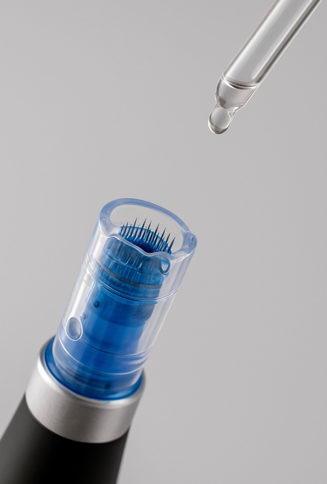 Ved micro-needling (Dermapen®) anvendes et elektrisk stempel, der med fine nåle penetrerer huden lodret i en forudbestemt dybde.